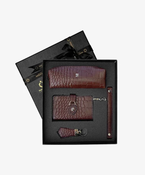 ست کیف پول و کمربند چرم دستدوز مدل آریا